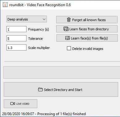 Video Face Recognition je nástroj sloužící pro rozpoznávání obličejů a identifikaci osob ve video souborech i živých přenosech. Pro rozpoznávání obličejů program využívá technologii umělé inteligence (AI) na základě předchozího strojového učení, které lze provést nahráním sady fotografií ve formátu JPG nebo videí typu AVI, WMV, MP4, MKV a MPG. Po provedené identifikaci osob je vygenerován přehledný report.