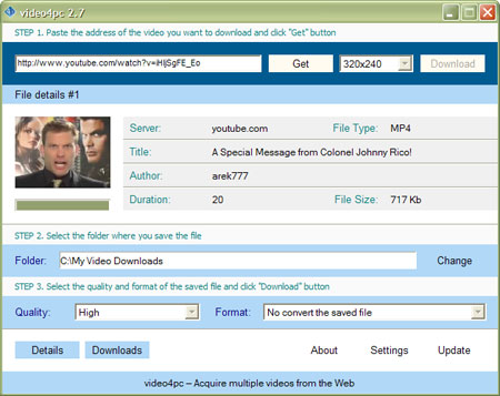 video4pc je užitečný nástroj pro snadné stahování videí z oblíbených multimediálních serverů YouTube, Metacafe a dalších.