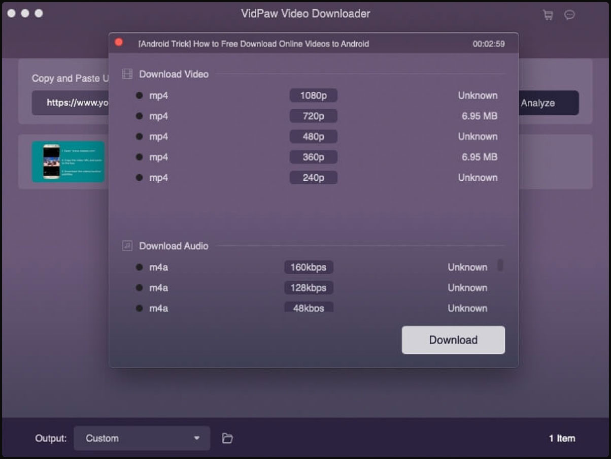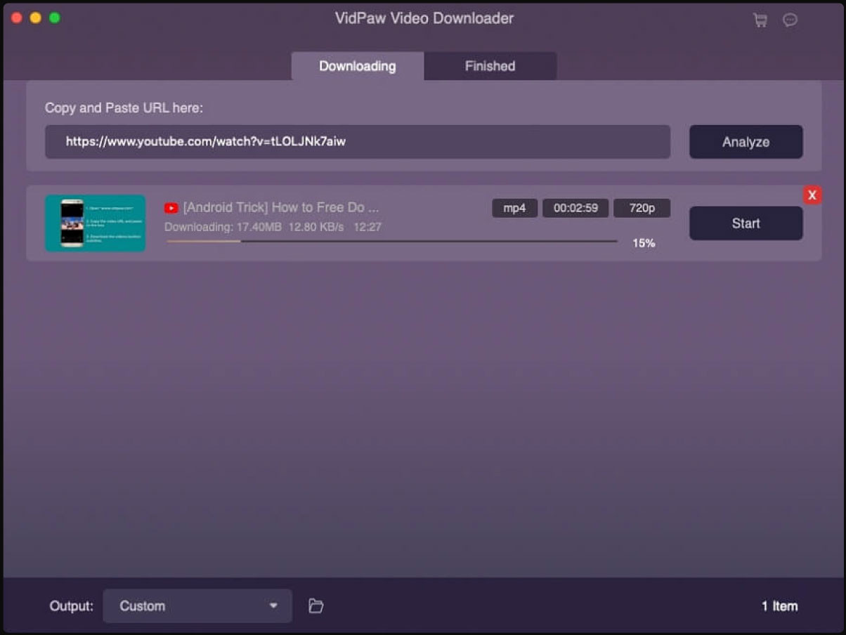 VidPaw for Mac je nástroj pro počítače s macOS, který slouží ke stahování videí i hudby ze serveru YouTube a mnoha dalších podobných serverů nebo streamovacích služeb. Podporováno je stažení a uložení videí s kvalitou až 8K nebo audio souborů s kvalitou až 320 kbps. Videa lze ukládat přímo do formátu MP4 a hudební soubory pak do MP3 formátu.