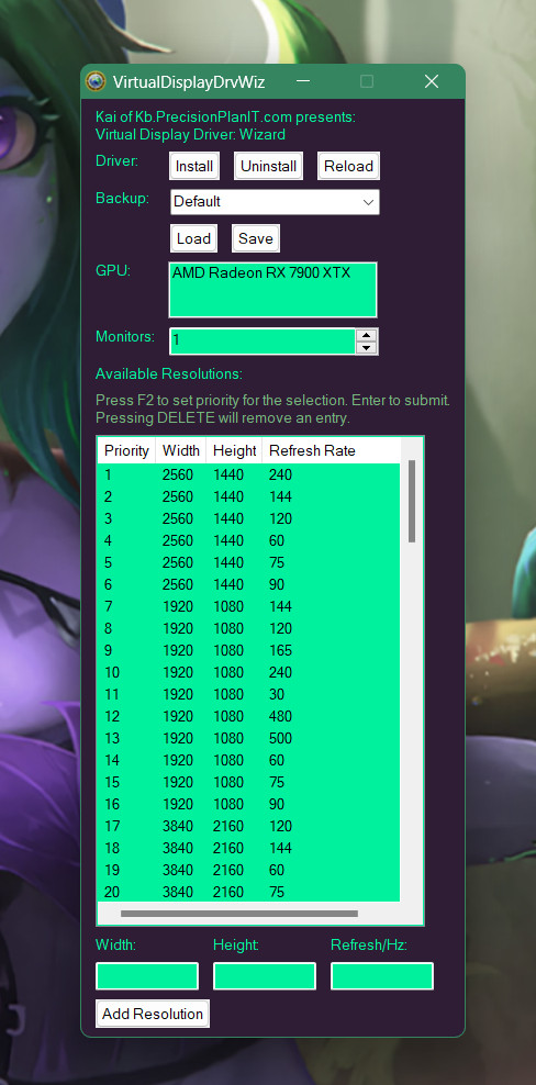 Virtual Display Driver: Wizard je pomocník sloužící pro snadnou správu virtuálních obrazovek ve Windows. Nástroj spolupracuje s ovladači typu Indirect Display Driver (IddSample), například s HDR-kompatibilním ovladačem od itsmikethetech.