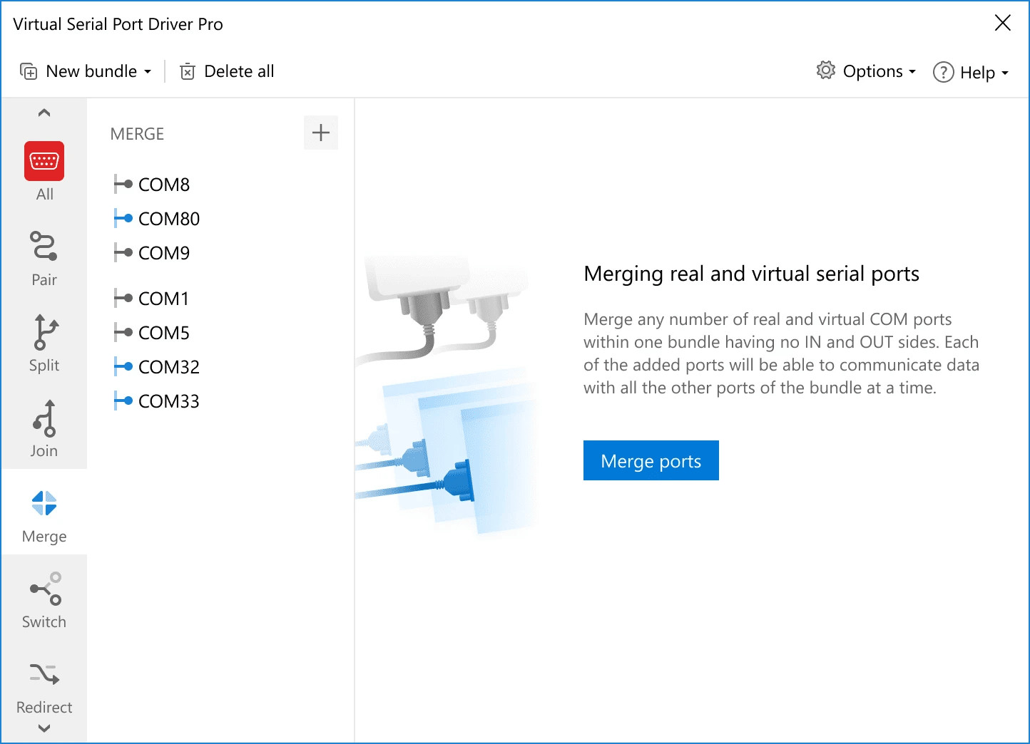 Všechny porty vytvořené pomocí tohoto softwaru plně emulují nastavení sériového portu stejně jako skutečné porty a podporují HandFlow kontrolu a signálové linky. To umožňuje, aby byly virtuální sériové porty viditelné pro operační systém, který je rozpoznává jako „standardní“ hardwarové sériové porty.