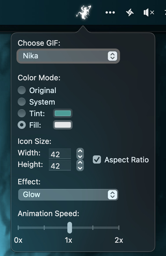 VivreBar for Mac je jednoduchý pomocník, který dokáže v oblasti menu baru v macOS zobrazovat animované GIFy a to včetně možnosti využití barevných efektů a úpravy velikosti a rychlosti animace. Jedná se spíše o zábavný a vizuálně efektní nástroj bez nějakého praktického využití, takže je určen především pro uživatele, kteří chtějí svůj menu bar ozvláštnit animovanými ikonami.