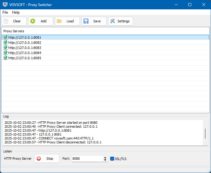 Vovsoft Proxy Switcher je nástroj, který pracuje jako lokální proxy server, který automaticky přesměrovává síťový provoz počítače přes upstream proxy servery.