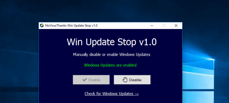 Win Update Stop je jednoduchá pomůcka pro deaktivaci automatických aktualizací operačního systému Windows. Program má velice snadné ovládání a aktualizace lze samozřejmě snadno opět aktivovat. Instalace programu není vyžadována.