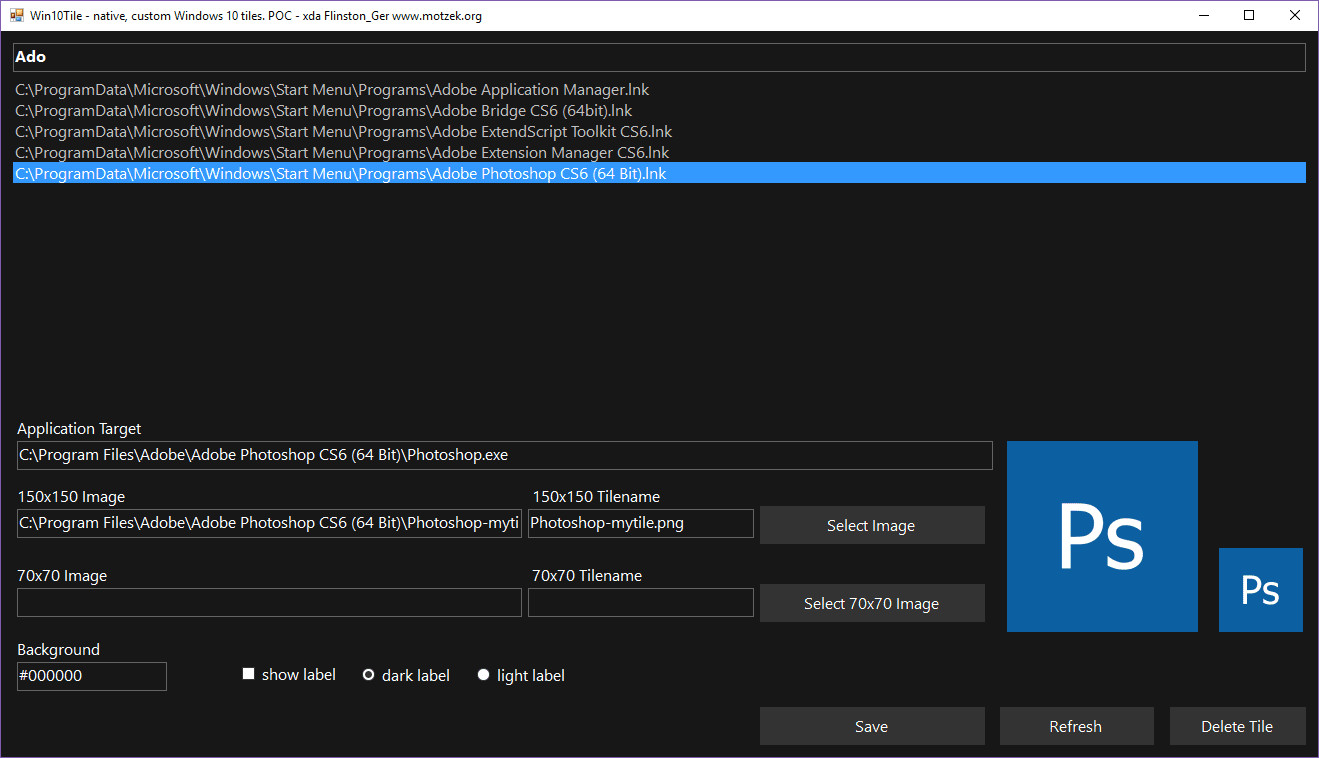 Win10Tile je jednoduchá utilita, která dokáže změnit obrázky respektive ikony u jednotlivých dlaždic programů v nabídce Start ve Windows 10. Možné je i vyhledávání programů, u kterých chce uživatel provést změnu obrázku. Program není potřeba instalovat.
