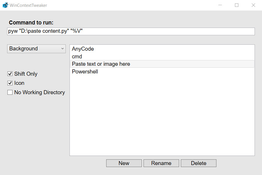 WinContextTweaker je nástroj sloužíc pro editaci kontextového menu na pravém tlačítku myši ve Windows. Uživatel může snadno přidávat nebo naopak odstraňovat položky z kontextové nabídky a podporováno je v využití skriptů. Skripty lze využít pro soubory, složky i specifické typy souborů.