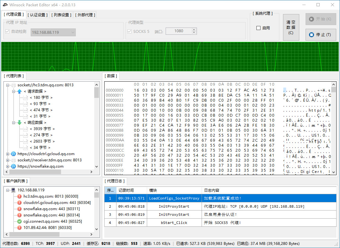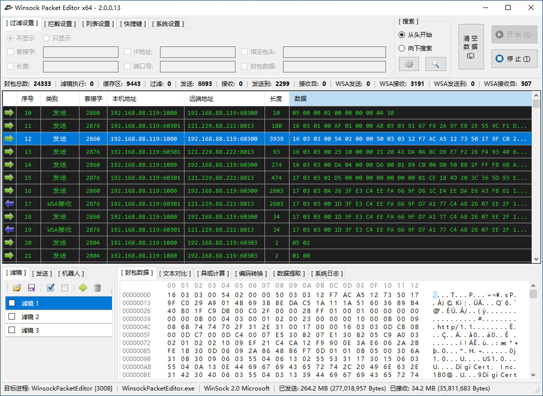 Winsock Packet Editor je aplikace sloužící pro zachytávání a úpravu síťových paketů procházejících přes WinSock. Nástroj podporuje režim SOCKS proxy a injektování do procesu. V proxy režimu pak jsou podporovány také různé hlavní proxy protokoly a SSL bezpečnostní protokol.