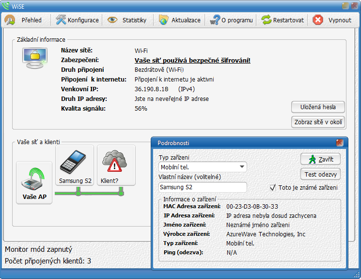 Použitím programu WiSE - Wireless Security budete schopni bezpečně a jednoduše monitorovat svou bezdrátovou síť a zabránit přístupu cizím klientům do Vaší soukromé Wi-fi sítě.