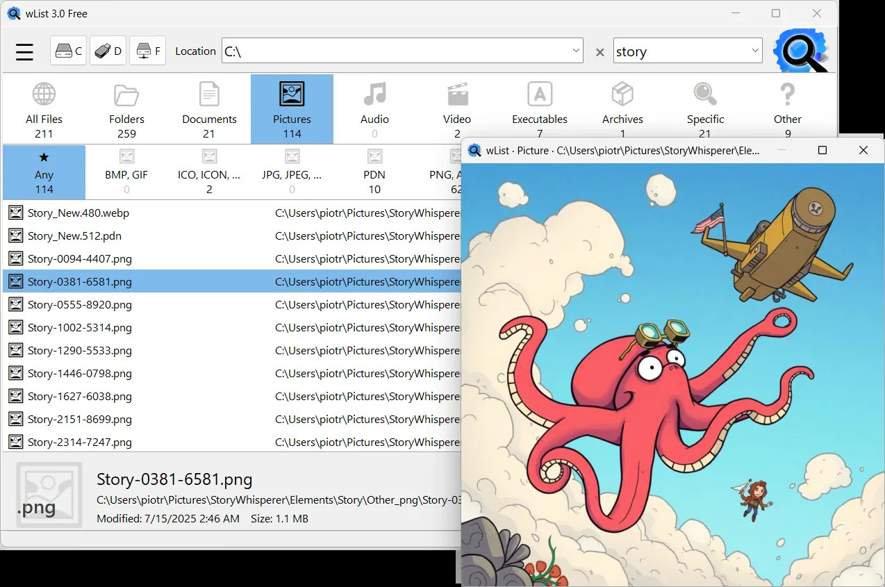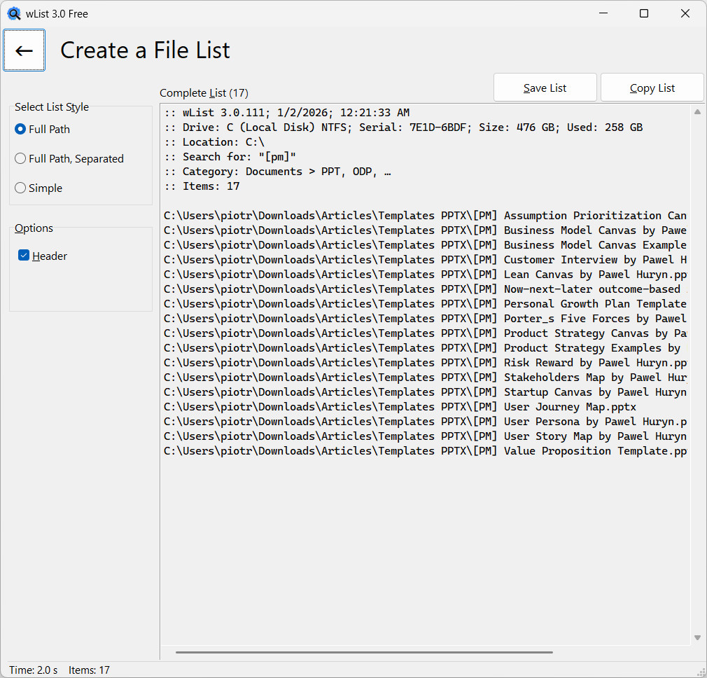 wList je aplikace sloužící pro snadné a především rychlé vyhledávání složek a souborů ve Windows a také pro tvorbu profesionálních seznamů souborů.