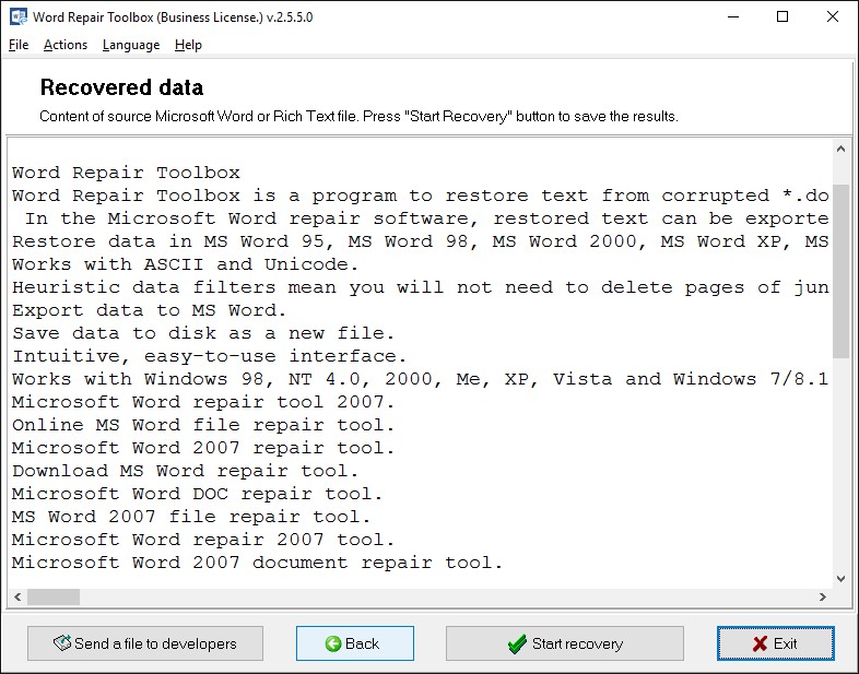 Word Repair Toolbox je pomůcka pro záchranu textu z poškozených dokumentů typu MS Word nebo ve formátu RTF.