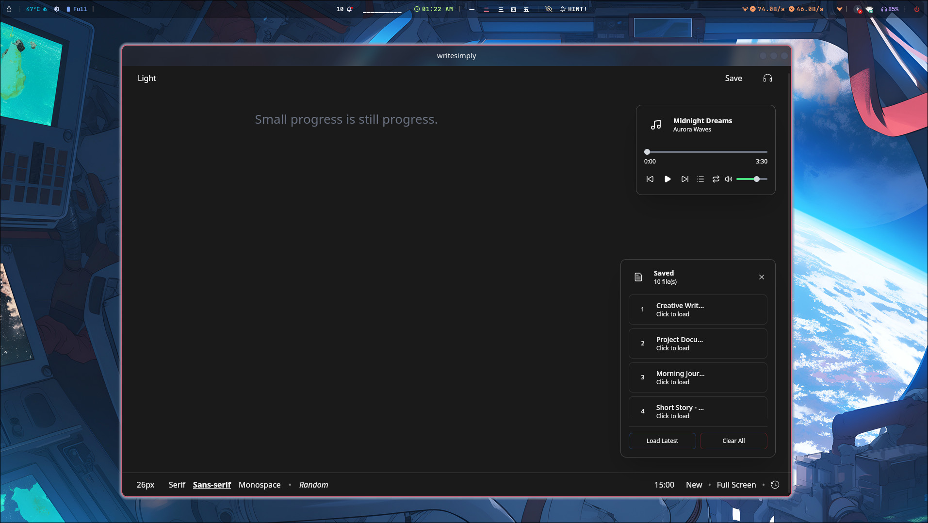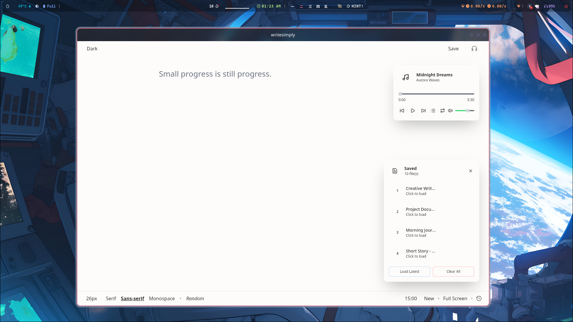writeSimply je minimalistický textový editor pro soustředěné psaní textu bez jakéhokoliv rozptylování. Editor nabízí čisté a přehledné uživatelské rozhraní bez zbytečných rušivých prvků.