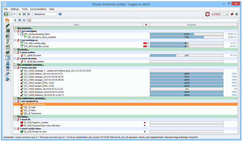 XStudio jeTest Management aplikace pro tvorbu, správu a detailní vyhodnocení různých druhů testů. Samozřejmsotí jsou přehledná grafická vyhodnocení, tisk přehledných reportů, plánování testů, vzdálená správa aplikace a mnoho dalšího. Program spolupracuje s databázemi typu MySQL, Oracle, SQLServer nebo MariaDB, které lze využít pro uchování dat.
