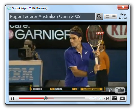 Sprink - YouTube Player je užitečný nástroj pro vyhledávání a přehrávání videí z oblíbeného multimediálního serveru YouTube. Program není potřeba instalovat. Videa je možno vyhledávat a přehrávat i bez spuštěného internetového prohlížeče.