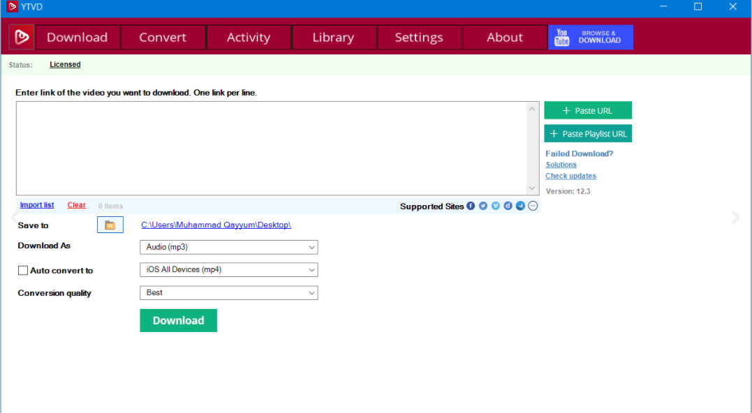 YTVD Video Downloader & Video Converter je aplikace pro stahování videa, audia i kompletních playlistů z oblíbeného serveru YouTube a podobných webových služeb. Stahovat luze samozřejmě i více videí současně a po stažení je možná jejich konverze do souborů typu MP4, 3GP, MPEG nebo AVI. Součástí programu je i webový prohlížeč pro vyhledávání videí ke stažení.