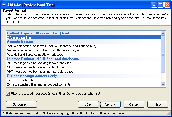 Aid4Mail je vynikající nástroj pro export elektronické pošty. Využijete jej v případě, kdy potřebujete s daty v ní obsaženými pracovat v kterémkoli běžně dostupném programu nebo v situaci, kdy vám stávající emailový klient z jakéhokoliv důvodu nevyhovuje, a přesto s přechodem na jiný váháte pro častou nekompatibilitu dat.