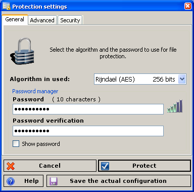 Zajímavou funkcí, kterou většina obdobných aplikací nenabízí, je možnost navolit otázku, která bude zobrazena jako nápověda, pakliže si nebudeme schopni na zadané heslo vzpomenout. Pokud nevyžadujeme využití rozšiřujících funkcí (popsány níže) lze již v tomto prostřednictvím ikony Protect dialogové okno uzavřít a zároveň tak provést samotné zašifrování.