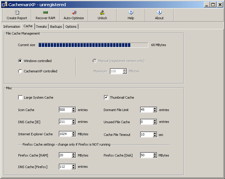 Program Cacheman XP je jednoduchým programem, který nám umožní analyzovat a spravovat operační paměť a cache, po zaregistrování je dostupná i jejich automatická optimalizace. Od programů svého druhu se liší nižším počtem funkcí, ty ke kterým je určen však vykonává bez potíží. Nevýhodou taktéž může být, že (prozatím) nejde spustit pod Windows Vista.