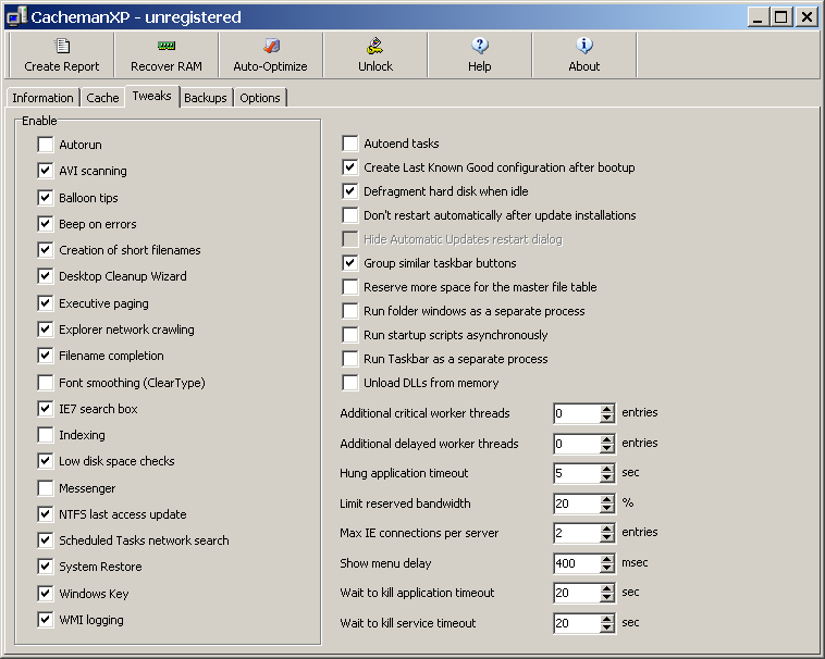 Veškeré výše popsané funkce je možné využívat neomezeně dlouho, bez nutnosti registrace. V případě, že se zaregistrujeme, dostaneme k dispozici v této verzi uzamčenou funkci Auto Optimize, jež konstantně sleduje náš systém a automaticky nastavuje nejlepší možné hodnoty zvyšující jeho výkon a stabilitu.