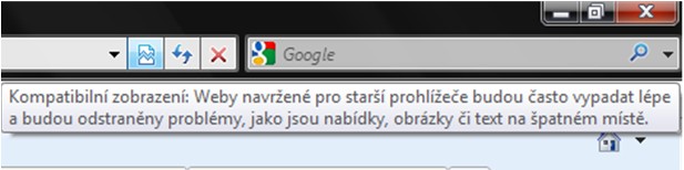 Jedna z hlavních novinek nového Internet Exploreru je tzv. Compatibility view, který použijete zejména v případě, že často procházíte staré a neaktualizované stránky. Pokud totiž přejdete na stránku, která se nezobrazí správně, stačí kliknout na ikonku „poškozená stránka“ (viz obrázek), a prohlížeč se pokusí stránku optimalizovat pro nejlepší čitelnost na úkor stylu.