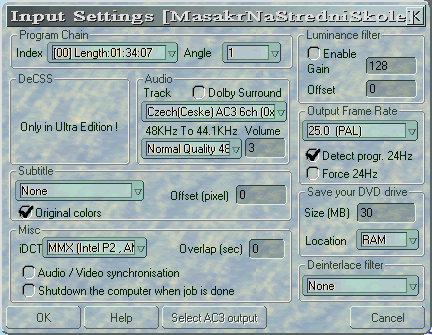 7. Nyní je čas zkontrolovat, jaké je nastavení vstupního souboru Input settings viz Obr. 2. Je pravděpodobné, že vše již bude nastaveno, tak jak potřebujeme, ale vyplatí se zkontrolovat nastavení jazyka sekce audio a titulků sekce Subtitle dle potřeby.