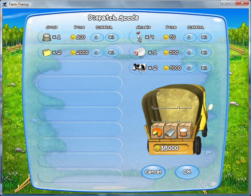 Pro sbírání věcí si můžete navíc koupit kočku. Celou práci se vám pak snaží kazit medvědi, kteří čas od času spadnou „z nebes“ a snaží se redukovat váš zvířecí stav. Naštěstí si můžete koupit psa, který svým štěkotem medvěda zastaví na místě a vy ho můžete jednoduše strčit do klece a pak odvést do města a prodat. Hra má celkově 48 misí a v každé z nich plníte různé úkoly, například musíte vyrobit 20 muffinů či sehnat peníze na jednu krávu. Vše je ještě podmíněno časovým limitem. Při výborném čase získáte za své snažení zlatou medaili, v dobrém čase získáte medaili stříbrnou a pokud se vám rozvoj farmy nevydařil, jste bez medaile. Za každý splněný level získáte určitý počet hvězdiček (dle medaile, času a peněz) a za ty pak v menu nakupujete lepší výbavu pro vaši farmářskou korporaci. Jak vidíte, herní systém není nijak složitý, zato ale příjemně návykový a zábavný.
