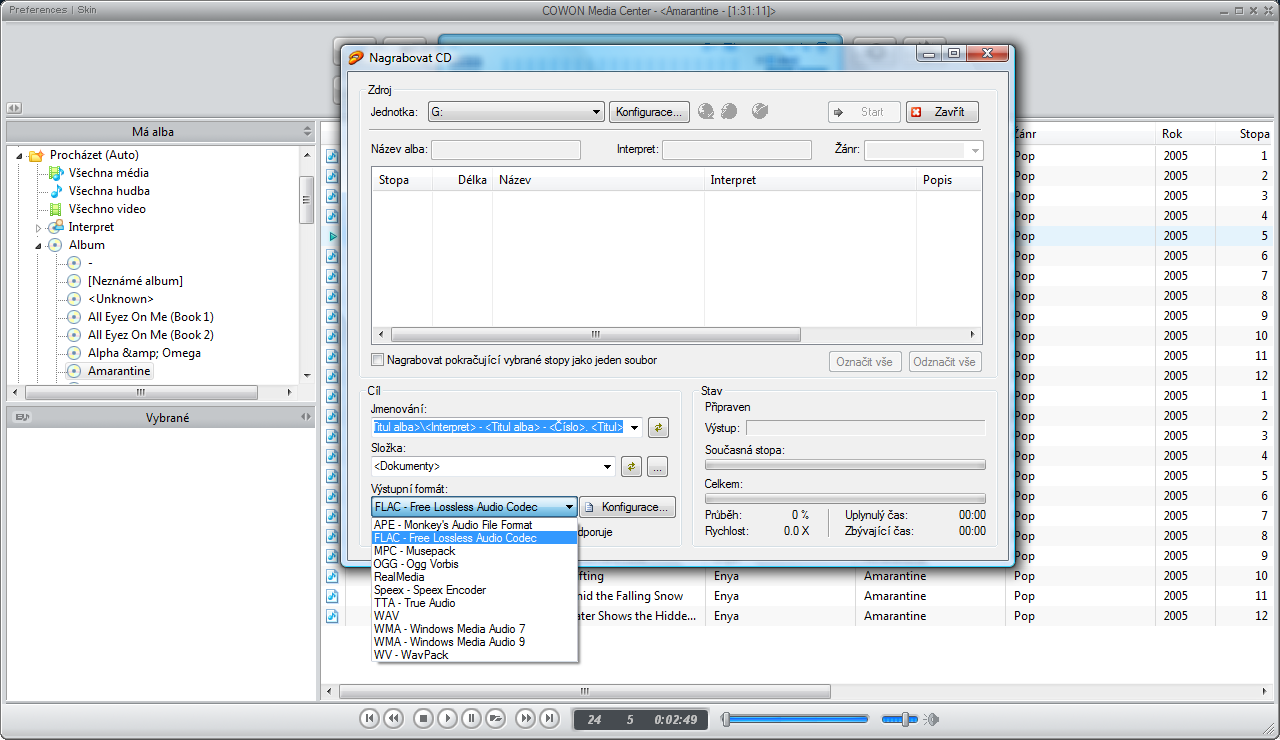 Pokud knihovnu nemáte zobrazenou, lze ji snadno otevřít kliknutím na tlačítko „media“ v hlavním okně programu. Provedena je celkem slušně, samozřejmě nechybí podpora playlistů, jak vlastních, tak automatických. Hudbu v knihovně se pak již klasicky třídí dle alba, žánru a podobně. Zkritizovat lze snad pouze občasnou nepřehlednost, která je způsobena zejména díky pevným „odkazům“ v knihovně, jedná se například o odkazy typu „Internetový obsah“ či „CD alba,“ prostě věci, které budete využívat opravdu minimálně, jestli vůbec. Ono vlastně většinu záložek v knihovně nelze odstranit, což je určitě škoda, mnoho z nich se pouze plete a na první pohled mate.