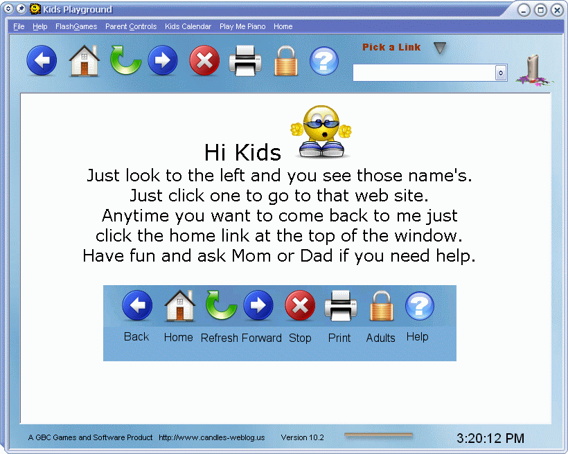 Jedná se o zabezpečený internetový prohlížeč, který byl vytvořen speciálně pro děti. Rodiče po zadání hesla vyberou internetové stránky, které jejich děti mohou navštěvovat a odkazy na tyto stránky se zobrazí v roletovém menu prohlížeče. Děti je pak mohou navštívit po jediném kliknutí myší. Program Kids Playground Web Browser také obsahuje jednoduchý kalendář a jeho součástí je i několik flashových her.