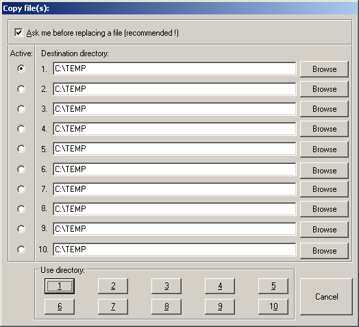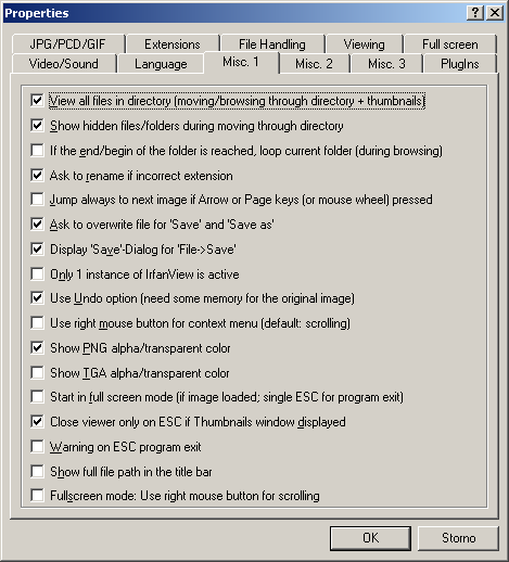 Pro pohodlné prohlížení je připravena slideshow, jež kromě základních nastavení umožňuje zvolit i exaktní prodlevy mezi jednotlivými slidy, velikost okna, zobrazení doplňkových textů nebo výběr hudby, která bude přehrávána na pozadí. Pro snadné nalezení požadovaných souborů je připraveno interní vyhledávání. Soubory lze řadit dle několika typů, výborně zpracované je i přejmenovávání, přesunování a kopírování souborů. Vedle možnosti nastavení implicitní složky, lze přednastavit několik dalších adresářů, do kterých bude po poklepání na patřičnou číselnou hodnotu daný soubor zkopírován (viz. obr.). Externě lze vyvolat i aplikaci Thumbnail, jež je s IrfanView těsně provázaná a umožňuje ještě rychlejší výběr požadovaných obrázků.Pro práci s více soubory najednou je připravena možnost vytvoření panoramatických setů – obrázky lze řadit vedle sebe horizontálně i vertikálně. Nechybí funkce zvětšování a zmenšování (včetně přednastavených nejběžnějších velikostí), rotace, oříznutí, převrácení a řady dalších, které důvěrně známe z profesionálních editorů.