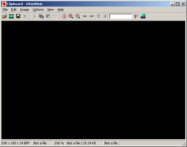V okamžiku, kdy po krátké instalaci (zde nelze nezmínit, že ačkoliv IrfanView pochopitelně umožňuje asociovat různé typy souborů – dokonce více než 60 druhů – nepředjímá uživatelovu volbu známým procesem, kdy aplikace implicitně označí veškeré typy souborů jako přidružené a pokud se to uživateli nelíbí, nezbývá mu, než všechny formáty jež k asociaci neshledává vhodnými ručně odznačit) program spustíme, uvidíme malé, jednoduché okno s černou výplní. Žádné grafické orgie vč. nezbytných tipů, blikajících bannerů a dalších parád se tentokrát nekonají.