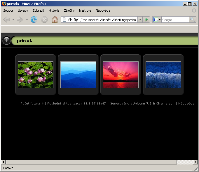 Chcete se pochlubit přátelům fotografiemi z exotické dovolené? Nebo jen pravidelně updatovat obrazové materiály na vašem osobním webu? Potřebujete jednoduchý nástroj, který z vašich fotografií udělá profesionální album, jež je ihned možné umístit na internet? Vyzkoušejte JAlbum.
