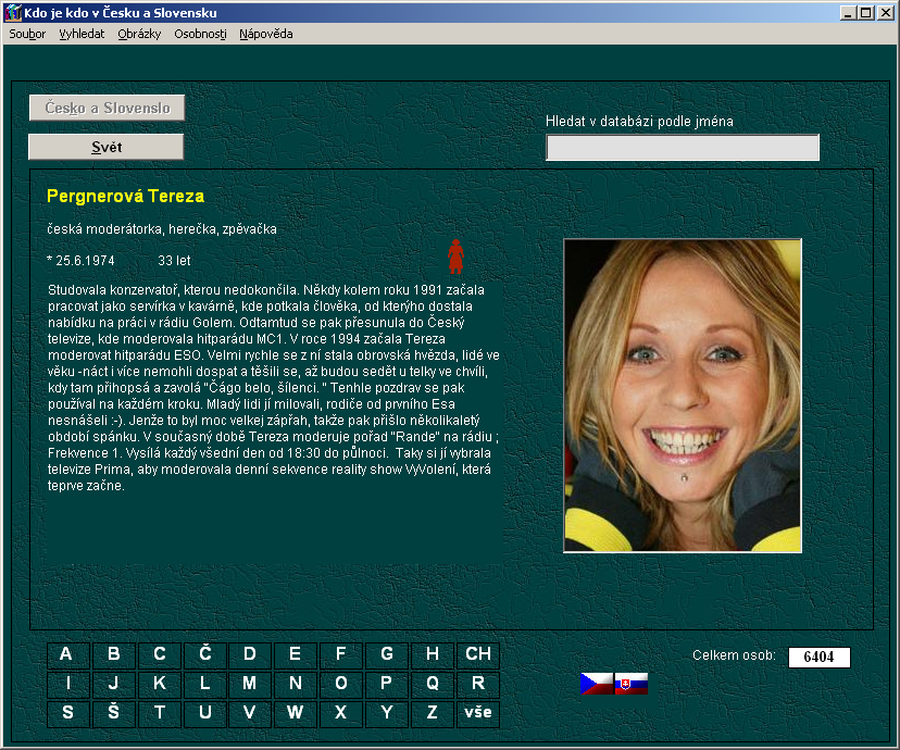 Vzhled programu působí příjemně, levá část okna je vyhrazena pro zobrazování jednotlivých informací, v části pravé nalezneme obrazové materiály. Zbylý prostor vyplňuje přepínání mezi domácími a světovými osobnostmi a hlavní menu s řadou dalších funkcí.