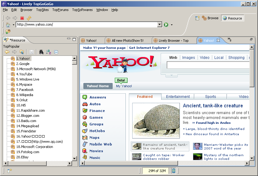 Lively Top GoGoGo je unikátním počinem, jenž si klade za cíl poskytnou uživatelům katalog nejlépe hodnocených, nejpopulárnějších a nejnavštěvovanějších serverů jednotlivých kategorií. V konečném součtu zahrnuje více než dva milióny webových stránek, což je na každý pád úctyhodné číslo.