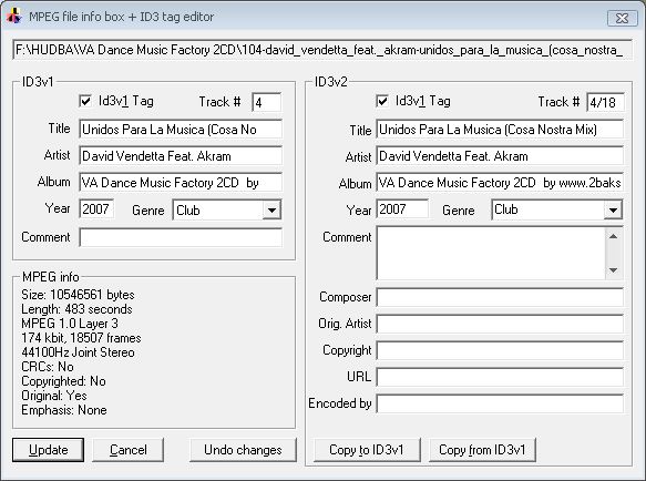 Program obsahuje i funkci editace ID3tagů verze 1 a 2. S možností úprav a uložení.