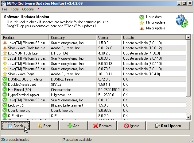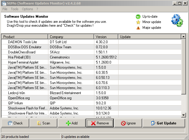 KC Softwares je u nás méně známá vývojářská společnost sídlící ve Francii. Právě ona se je autorem programu SUMo. Jak jste již pochopili, bude se jednat o program, který bude hlídat aktuálnost distubicí vašeho nainstalovaného software. Program je freeware, takže ho budete moci plně využívat a nezaplatíte za něj přitom ani korunu.