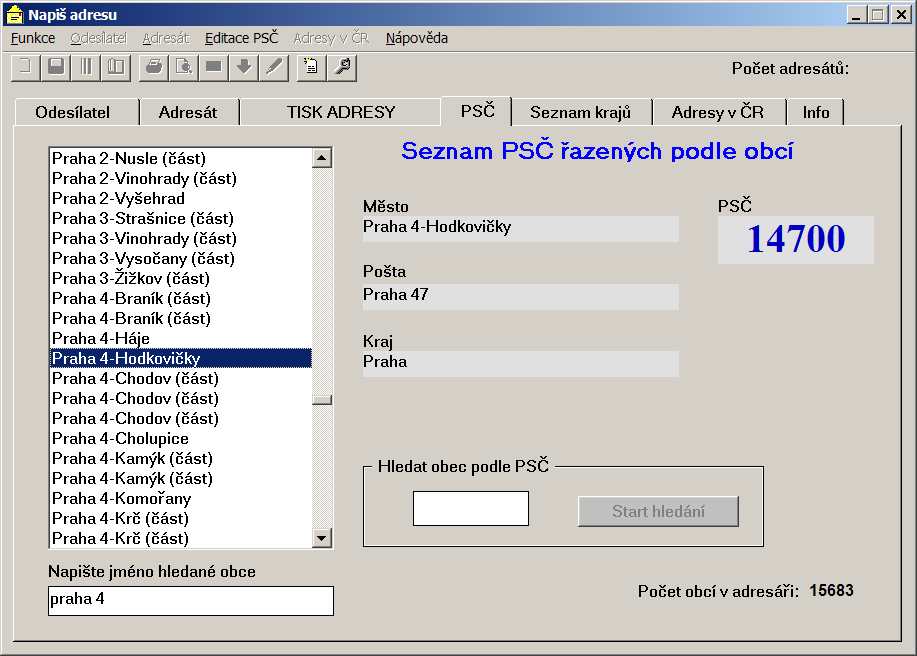 Vedle základní, a nutno podotknout, že velice jednoduché tvorby adres pro tisk, obsahuje Napiš adresu ještě řadu sympatických doplňkových funkcí. Výše zmíněné platí např. o vyhledávání poštovního směrovacího čísla pro danou obec (vyhledávání umožňuje i opačný proces, totiž nalezení obce, které náleží námi držené PSČ). Jestliže komunikujeme v úřední věci, můžeme využít seznam některých vládních institucí, vč. všech ministerstev nebo velkých politických stran.