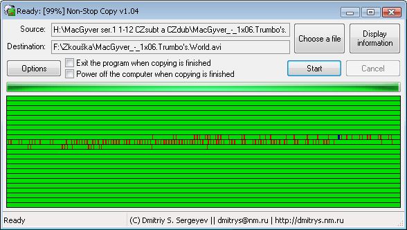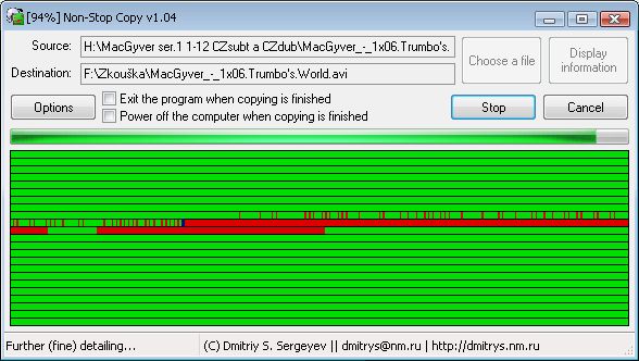 Program je možné nastavit tak, aby poslední etapa se opakovala do té doby, než bude soubor úspěšně zkopírován. Proto ten název programu Non-Stop-Copy.