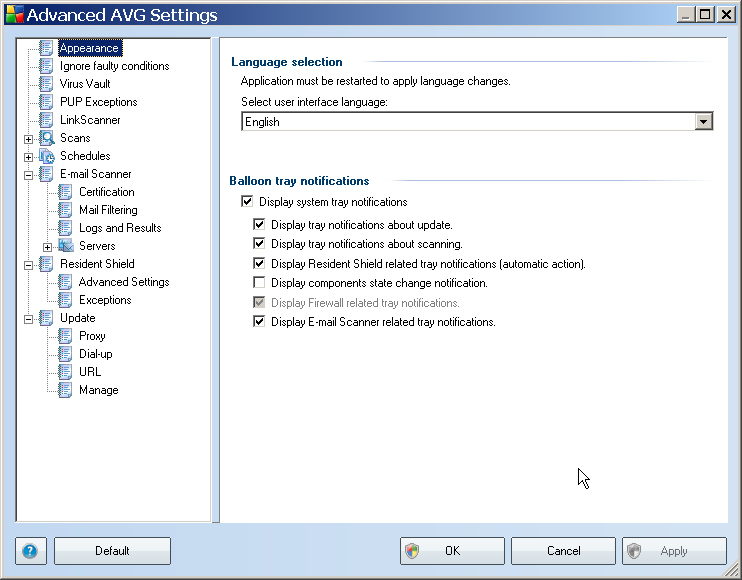 Sekce pokročilých nastavení sice již vyžaduje zkušenějšího uživatele, ovšem stále to není nic, co by člověk s pomocí slovníku a přátel nezvládl. Jazyk bohužel nezměníme ani tady. Zato jde pracovat s parametry Virus Vaultu, updaty přes proxy, lze určit, jaké koncovky prohledávat rezidentem, nastavit odstraňování e-mailových příloh a mnoho dalších věcí.