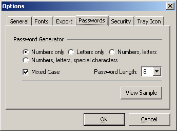 Pro usnadnění některých voleb (zejména snadného uzamčení databáze) je možné použít ikonu, jež bude po uživatelově pokynu umístěna do panelu system tray. Důležitou součástí je konfigurovatelný generátor hesel, jenž pomůže při výběru co možná nejvíc bezpečného hesla. V nastavení pak lze upravit celou řadu parametrů, od definování užitého písma, přes volby vztahující se k exportu dat až po nastavení obslužného charakteru (např. po uplynutí jak velké doby má dojít k uzamčení databáze).