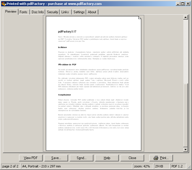 pdfFactory je výtečnou aplikací pro tvorbu PDF souborů. Oceňována je především možnost velmi snadné kompilace výchozích zdrojů. Díky snadnosti ovládání si najde cestu i k začínajícím uživatelům.