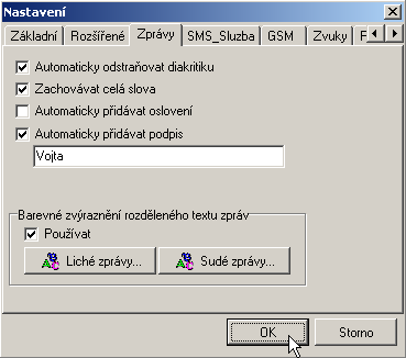 Důležitost záložky Zprávy je však mnohem větší. Je zde funkce Odstraňování diakritiky, Zachování celých slov a pak třeba možnost přidání podpisu. Tyto funkce jsou, dle mého názoru, velice důležité a jejich zvolením rozhodně nikdy nic nezkazíte. Ostatní záložky nejsou tolik důležité a můžeme se na ně spíše jen podívat, než v nich něco upravovat.