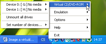 Jakmile mechaniku vybereme, stačí klepnout na volbu „Unmount image“. Naopak volba „Mount image“ vám umožní do této mechaniky načíst nový image soubor. To jde ovšem udělat i klasickým způsobem přes levé tlačítko myši.