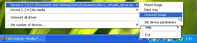 Když už jsme si z image obrazu vše potřebné nahráli a chceme ho dát pryč, stačí klepnout na příslušnou ikonku pravým tlačítkem myši a následně vybrat mechaniku, ze které chceme image odstranit.