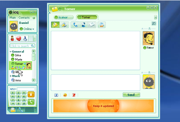 Začněme u nás nejpoužívanějším protokolem, tedy ICQ. Tento protokol si během času našel mezi tuzemskými uživateli řadu příznivců i odpůrců. Kromě naší země je ICQ hodně rozšířené také na Slovensku a v Izraeli, kde byl tento protokol vyvinut společností Mirabilis (jež byla odkoupena americkou společností AOL). V jiných zemích se jedná o protokol méně známý. Nelze zastírat, že protokol ICQ trpí některými svými neduhy. Jedná se zejména o občasnou nestabilitu, změnu podoby a poněkud přísné licenční podmínky. Odpůrci protokolu a zlí jazykové též tvrdí, že ICQ bylo hned od základů navrženo špatně a stalo se doménou dnešních teenagerů, kteří si myslí, že nemít „ajsko“ zkrátka není „in“. To není tak úplně pravda. Jedná se o protokol, který má co nabídnout a za dobu své existence si tak našel řadu uživatelů, kteří jej používají.