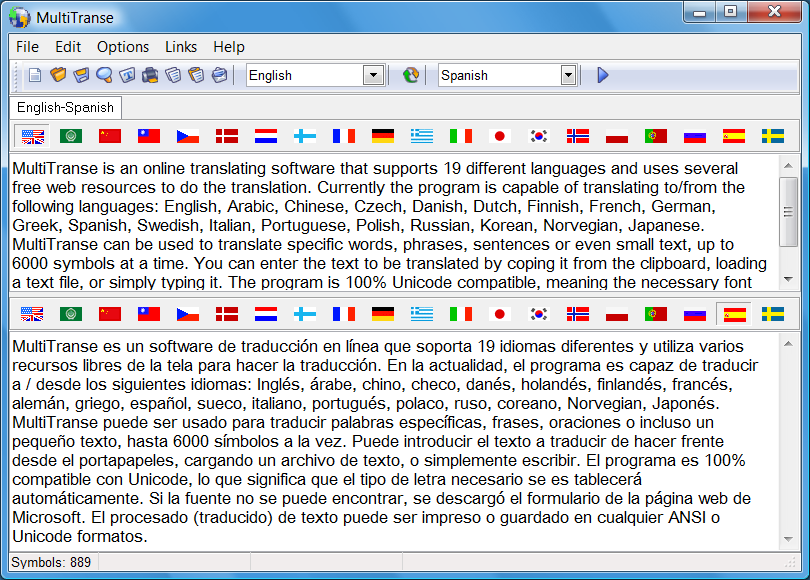 MultiTranse je užitečný nástroj, který nabízí rychlý překlad cizojazyčných textů. Poradí si jak s překladem slov a frází, tak i s rozsáhlými texty, obsahujícími až 6000 symbolů. Pro samotný překlad MultiTranse využívá a vzájemně kombinuje volně dostupné online zdroje, díky čemuž poskytuje nejrelevantnější překlad. Ke své práci tedy vyžaduje připojení k internetu.