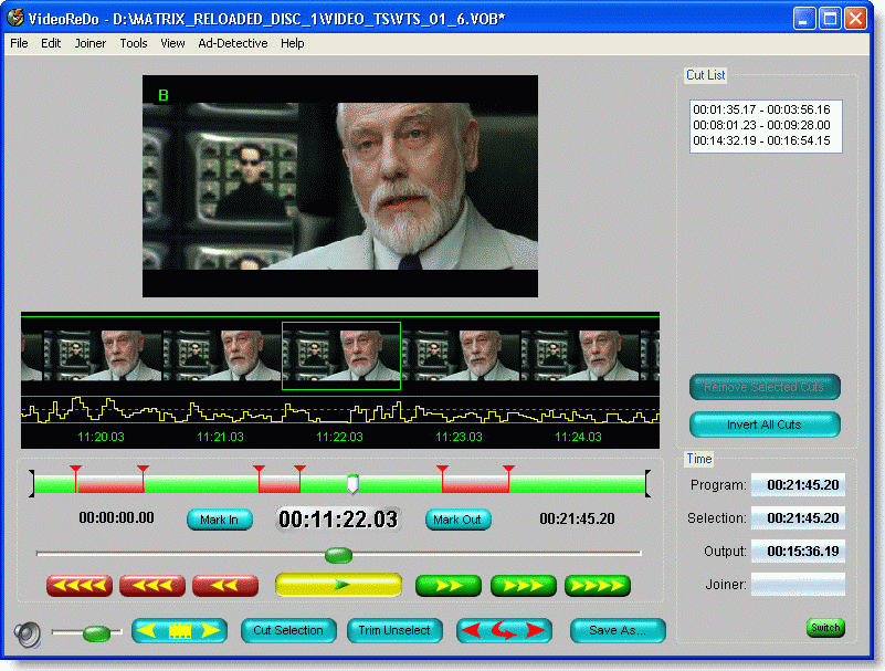 VideoReDo Plus umožňuje vyhledávání a následné odstraňování komerčních reklamních sdělení v obrazech. K dispozici je také okamžitý náhled na vytvářené dílo.