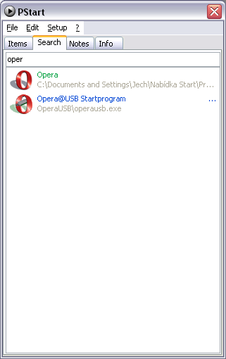 PStart umožňuje také hledání programů nainstalovaných v PC, ke kterému je vaše paměť právě připojena. Integrovaná funkce „search“ vyhledává na daném PC programy vhodné ke spuštění především v nabídce Start. Dále si do programu můžeme přidávat poznámky, ty je možno třídit do skupin a nechat si je po čase programem připomenout.