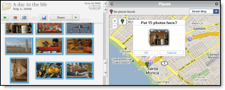Program nabízí také tzv. Geotagging, tedy přiřazování zeměpisných informací k vyfoceným snímkům. Pomocí volby „Places“ stačí vybrat na Google Maps požadovanou lokalitu a přetáhnout sem myší příslušný snímek (nebo i více snímků současně).