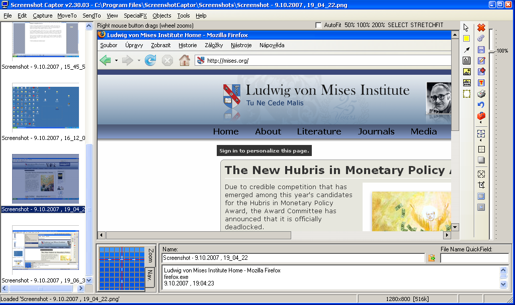 Připravena je taktéž řada speciálních efektů a možnost dalších úprav. Screenshot můžeme uložit do kteréhokoli z běžně používaných formátů, nebo rovnou odeslat elektronickou poštou. V nastavení lze navolit parametry k procesu snímání, editace i ukládání. Vyzdvihnout je nutné velice dobře zvolené rozložení jednotlivých prvků, práce s programem je intuitivní a příjemná.