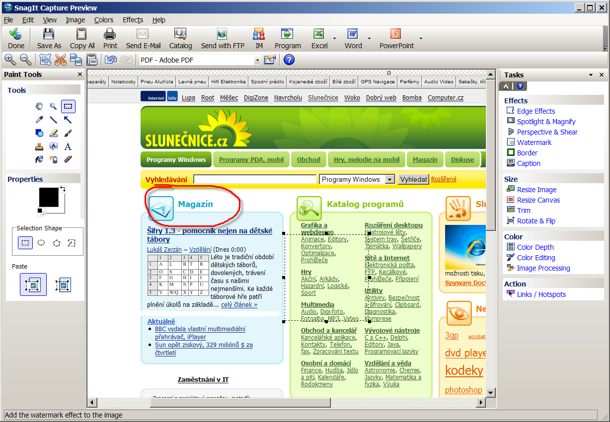 SnagIt je vynikající program určený pro snímání obrazovky a následnou editaci výstupů. Kromě očekávaných funkcí obsahuje i významné vylepšení, jako je abstrakce textu, nahrávání videa a především intuitivní zachycování i mnohdy problematických částí našeho desktopu. Velmi vysoké kvalitě odpovídá i cena, pro dlouhodobé používání je nutné zakoupit licenci v hodnotě 39.95 amerických dolarů.