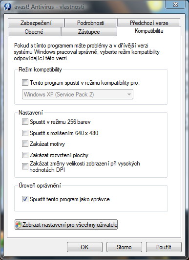 To lze provést kliknutím pravým tlačítkem na ikonku reprezentující daný program výběrem volby Vlastnosti – Kompatibilita a Spustit tento program jako správce.